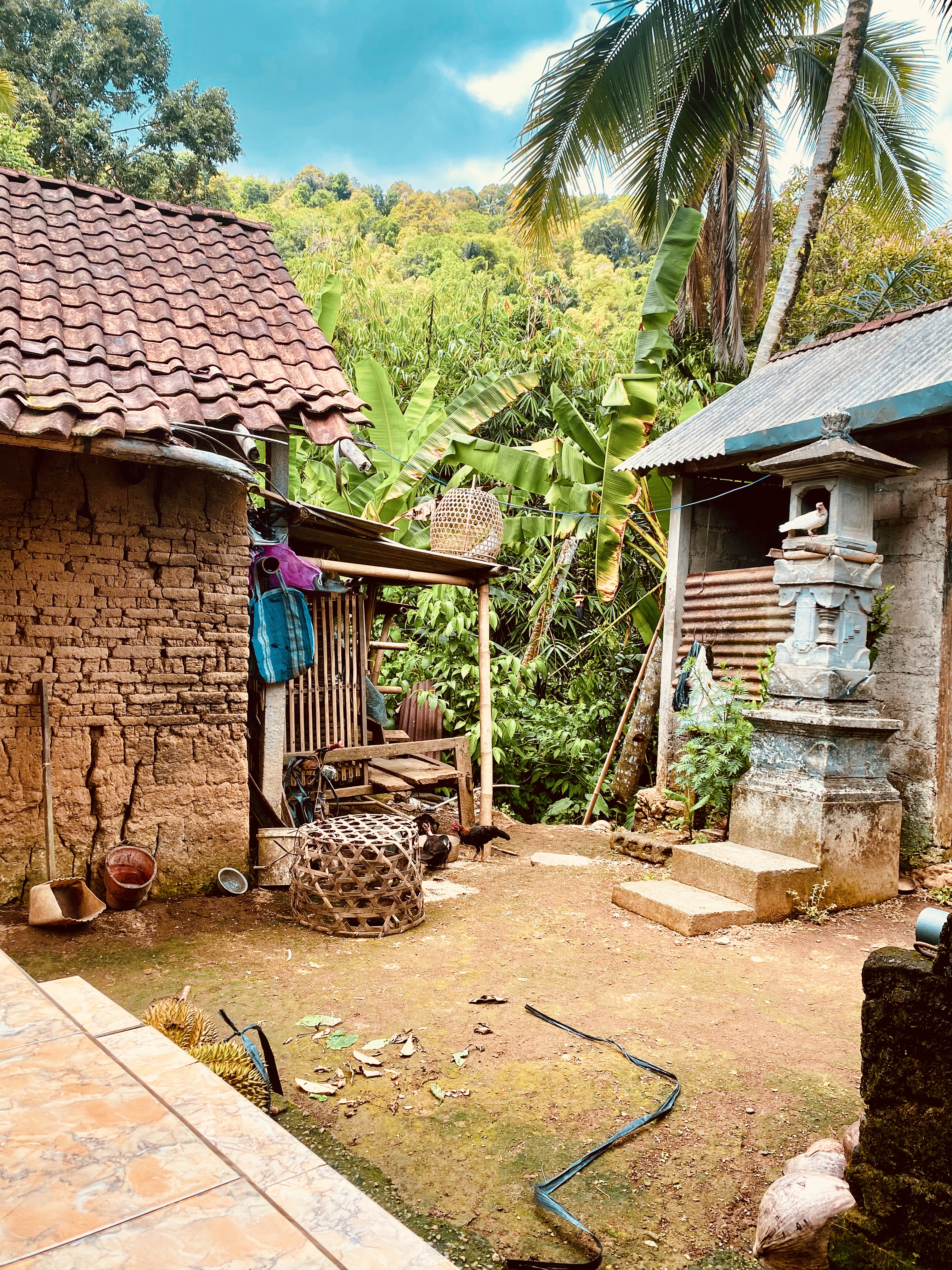 Nous faisons connaissance avec ses parents, sa sœur ainsi que sa nièce et Nyoman nous fait faire la visite de sa maison d’enfance, il nous parle de sa famille et fait le traducteur pour ses parents qui ne parlent qu’Indonésien et Balinais.