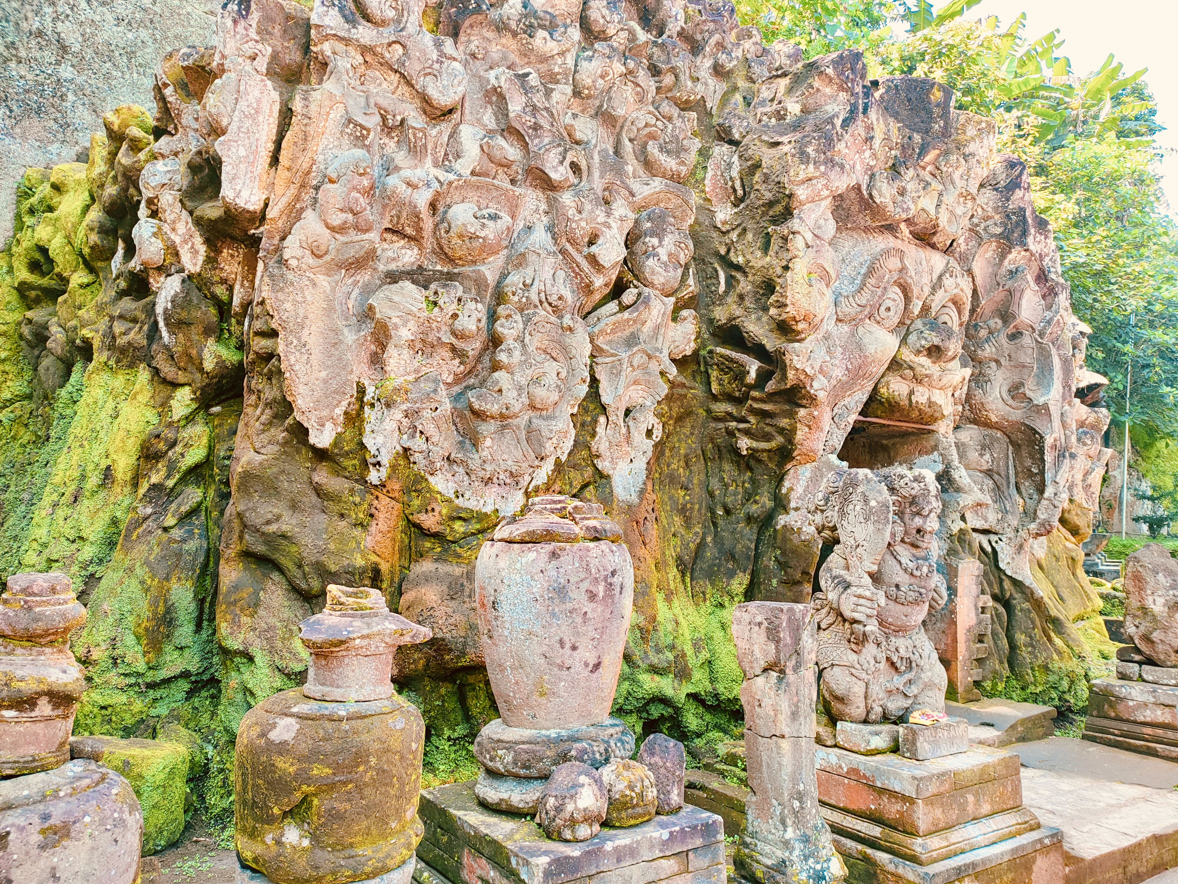 Nous arrivons en milieu d’après-midi après 1h30 de route depuis Padang Bai où nous avons récupéré notre scooter. Nous retrouvons les paysages que nous aimons tant à Bali, la jungle luxuriante, des petits villages le long de routes plus jolies les unes que les autres. Des quartiers de maisons avec des portes ornées de sculptures et où chaque famille à son petit temple. Des fleurs partout, et des sourires !