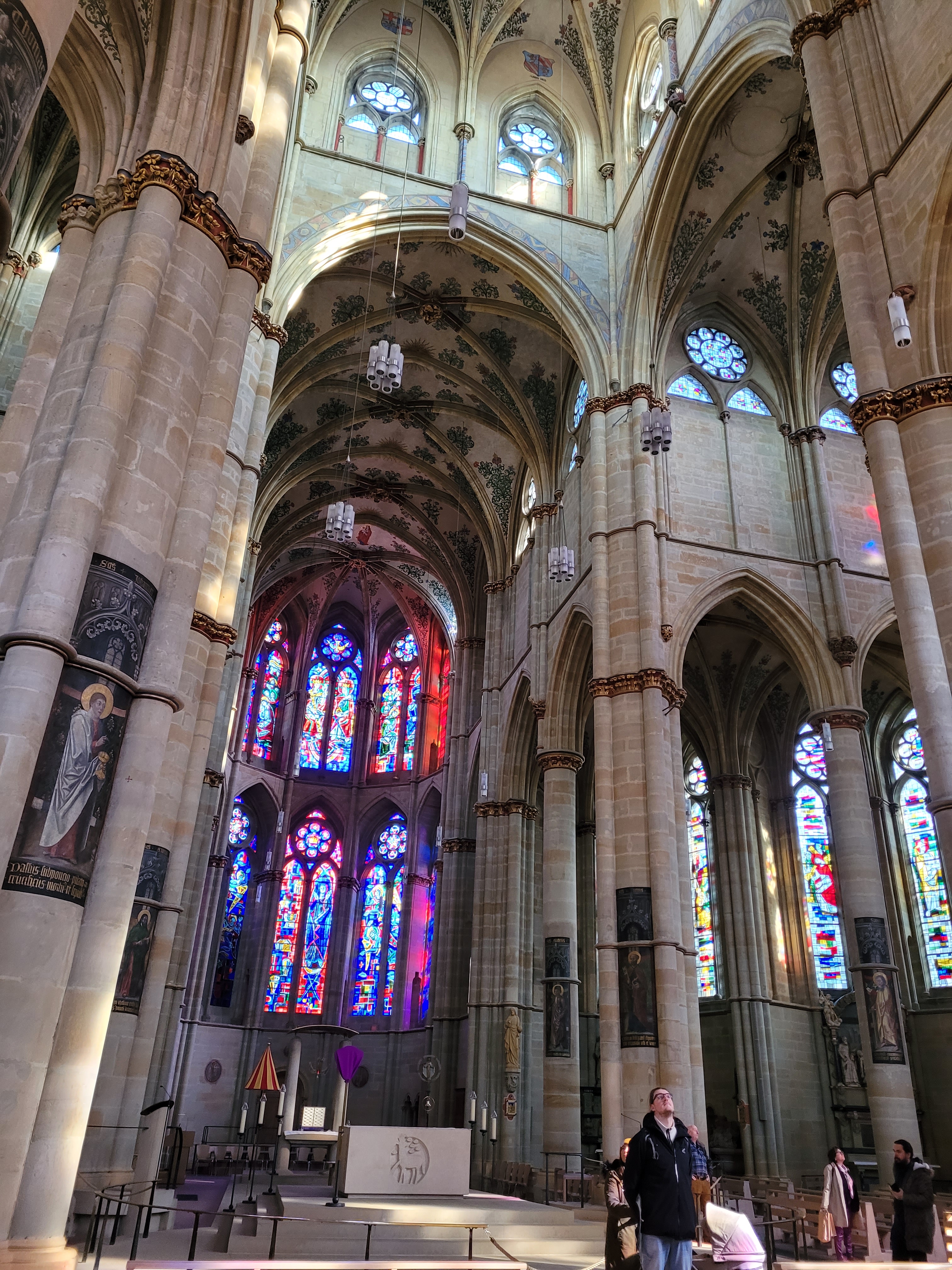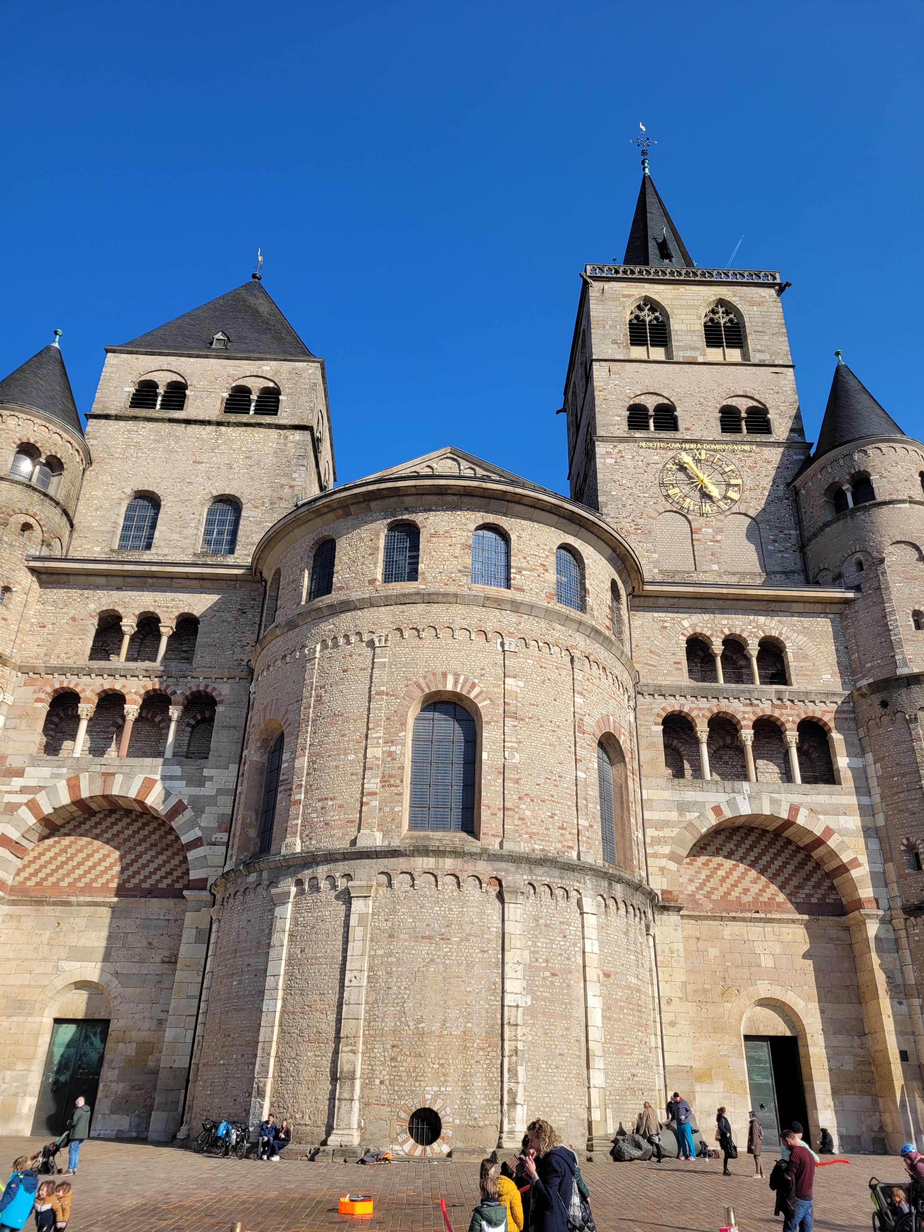 Juste à côté de la place Hauptmarkt, sur une autre place, Domfreihof, se trouvent la magnifique cathédrale Saint-Pierre (Trierer Dom) et l’église Notre-Dame (Liebfrauenkirche), elles sont toutes les deux accolées mais ont deux entrées bien distinctes. Il faut absolument visiter ces deux monuments inscrits au Patrimoine mondial de l’UNESCO, la cathédrale pour son magnifique cloître et ses jardins, et l‘église pour son intérieur surprenant de beauté.