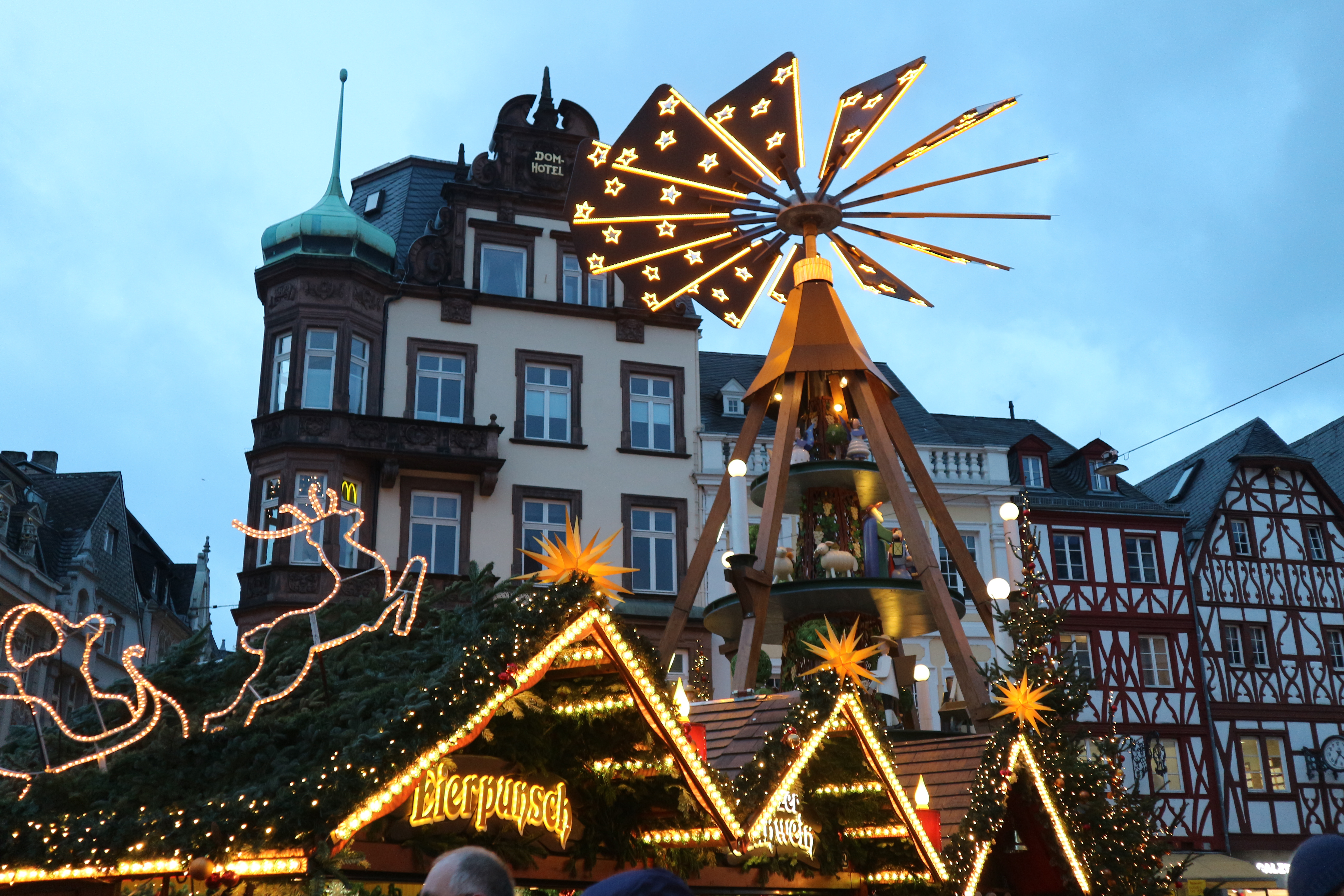 A Trèves, l’essentiel du marché de Noël se trouve sur la place du marché, Hauptmarkt, et devant la cathédrale sur la place Domfreihof.